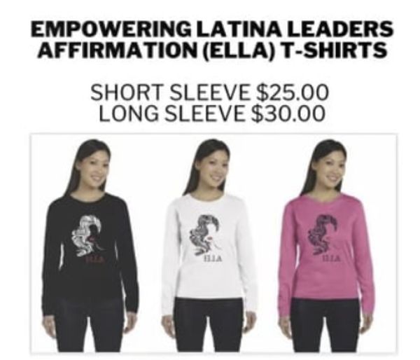 ELLA logo V-neck T-shirts are available in two styles: the short-sleeve cotton tee ($25) and the long-sleeve soft polyester tee ($30). Please note that the pink shade may vary slightly depending on the manufacturer. When ordering, make sure to select the correct price and include your preferred style, color, and size. For now, these T-shirts are only available through this website or during ELLA events. If you would like to order more than six shirts, please contact us for group discount options.